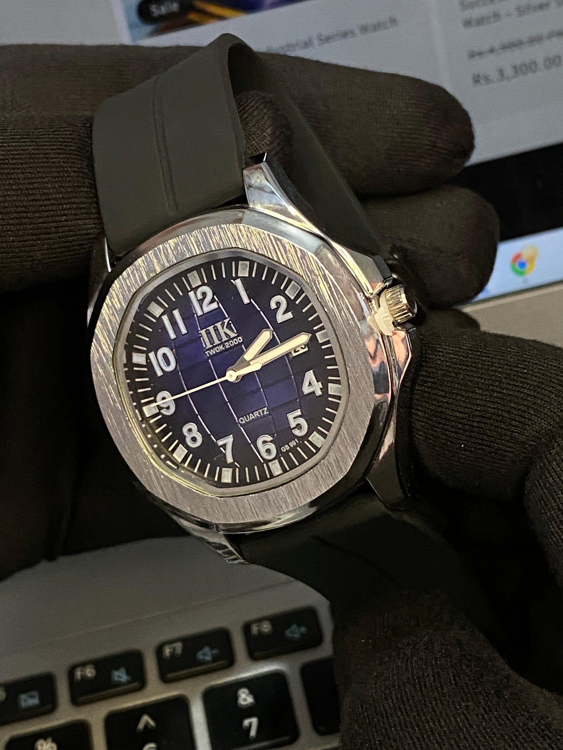 Upgrade your everyday look with this bold and stylish Twerk Rood watch. Featuring a brushed silver-tone bezel, deep blue grid-pattern dial, and a comfy black silicone strap, this timepiece offers reliable quartz movement with a modern twist. A perfect pick for daily wear!